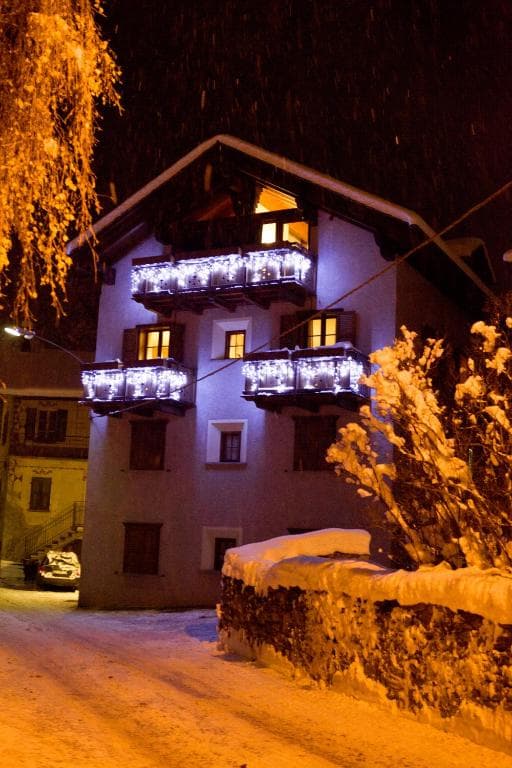 Bormio holiday ski resort lit up by lights at night