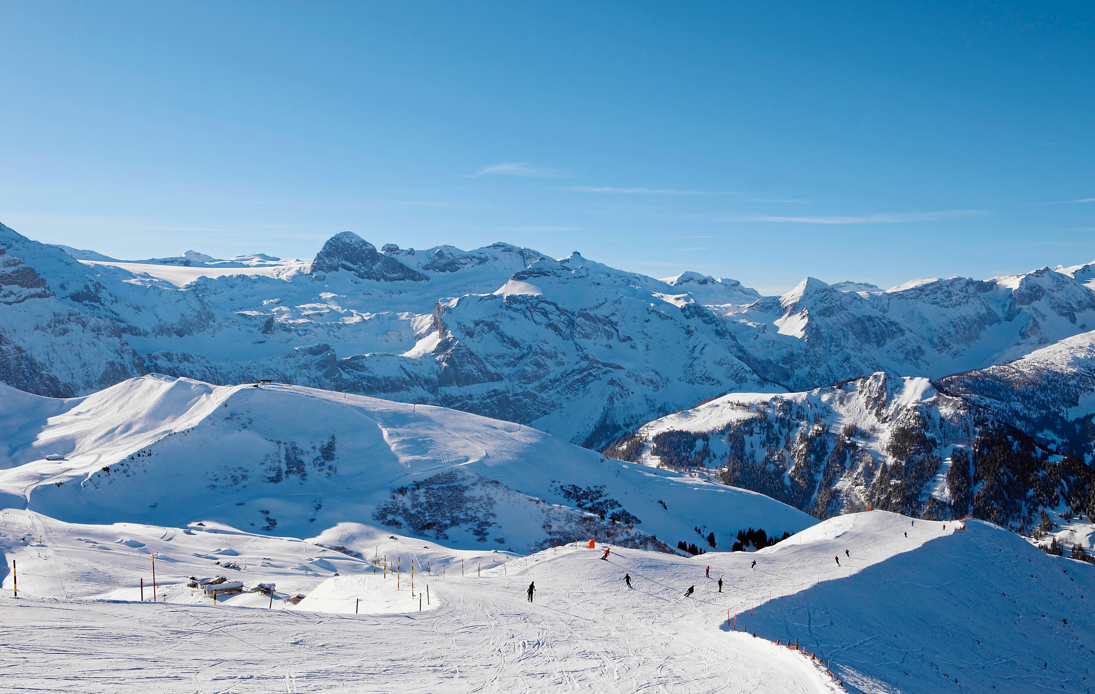 An intermediate’s playground. Lenk is a ‘traditionally Swiss’ ski resort in the Simmental region of the Swiss Alps. It’s part of the interconnected Adelboden-Lenk ski area which has 148km of pistes. Wide, cruisy blues and more challenging reds will more than occupy you for your trip. But tougher challenges are available on the Chuenisbärgli, home of the World Cup track. Only here for a long weekend? No problem. The lift system has recently undergone a facelift so you can spend less time sitting and more time shredding. This area also has some of the best cross-country trails in Switzerland due to its width and flatness. A quick heads up for snowboarders, be ready for some extended ‘flat’ areas on linking trails. You may need to scoot your board or find a friendly skier to give you a tow. Off the slopes you’ve got plenty to fill your time including an ice rink, thermal spas and plenty of shops to get your Swiss chocolate fix.